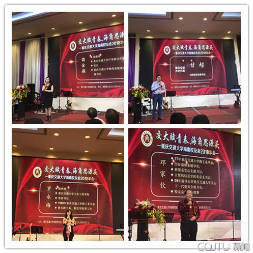 学校产学研合作处处长苗金燕、土木学院党委书记罗永梅、河海学院党委书记甘超、现任校友总会常务理事邓家钦等学校代表一一上台发言,对广大海南校友取得的事业成就表示衷心祝贺,希望校友们不忘饮水思源的情怀,在未来的日子里传承并发扬“明德行远,交通天下”的校训,谱写属于重庆交大人的新篇章。