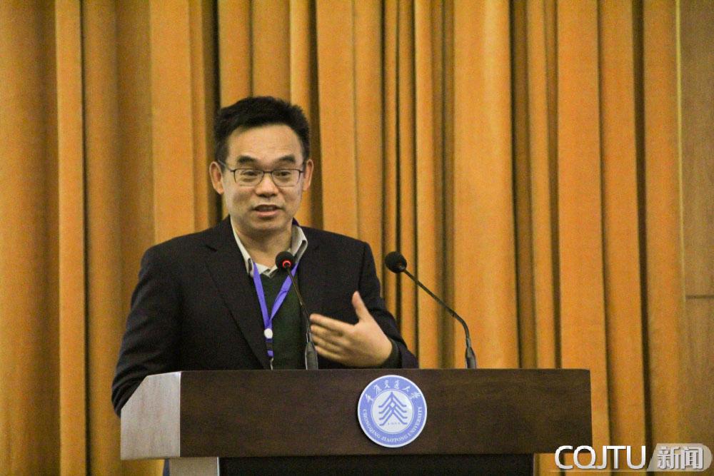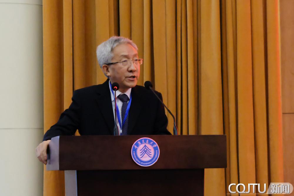 第二阶段进行了“交通发展论坛”学术报告。全体人员聆听了79级学生代表蒋中贵主讲的“桥梁连接我们和世界”学术报告。两路口缆车、山城电影院、解放碑百货商店……一张张充满年代感的历史老照篇勾起了在场师生的在校期间的回忆,蒋中贵追溯了1979年读书时候弥足珍贵的记忆,重点讲解了重庆桥梁的建设以及自己和团队参与的桥梁建设。他赞扬了母校的蓬勃发展,祝福母校明天更美好。