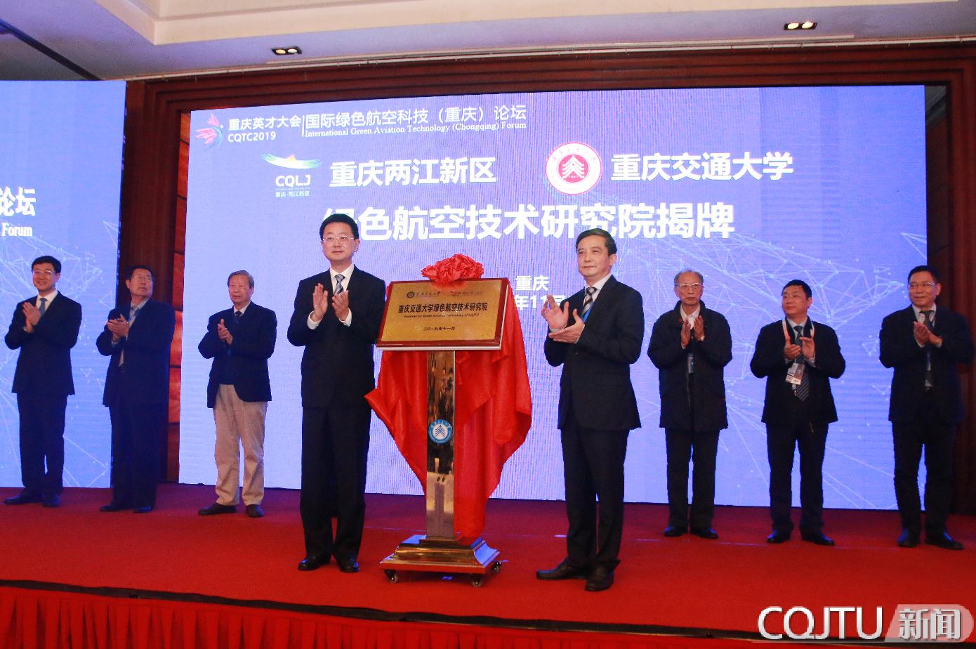 重庆市委常委、两江新区党工委书记、管委会主任段成刚,重庆交通大学党委书记李天安共同为重庆交通大学绿色航空技术研究院揭牌。