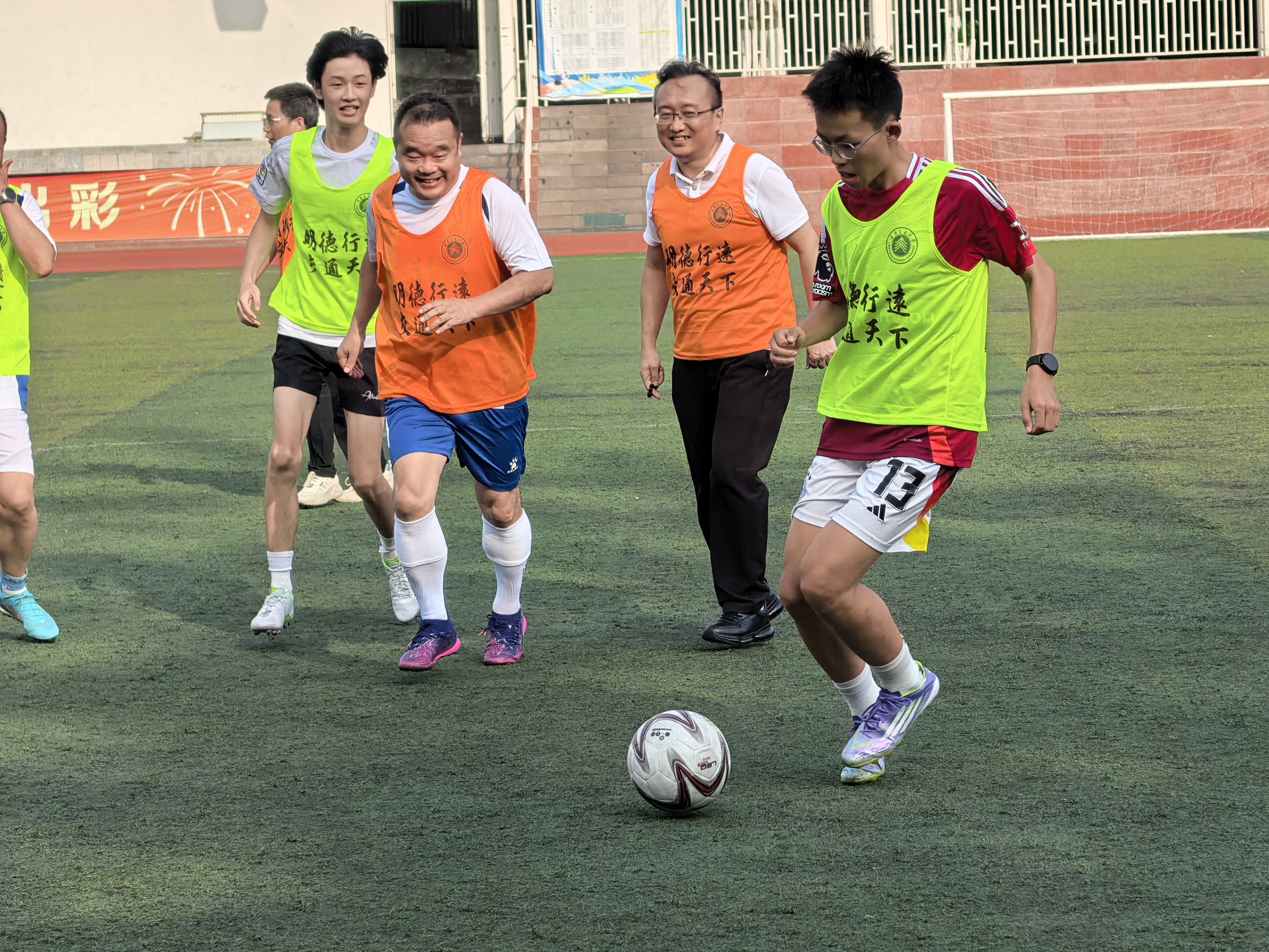 返校期间,校友们共同参观了“两路”精神育人园。在一幅幅历史影像、一段段珍贵史料前,大家驻足聆听、深情交流,在重温峥嵘岁月、感悟初心使命的过程中,进一步加深了对 “两路” 精神的传承与理解,让红色基因在追忆中愈发鲜明。同期举办的足球交流赛,更是将返校活动氛围推向高潮。绿茵场上,校友们重拾青春记忆,尽情奔跑、默契配合,昔日校园里的活力运动场景在欢声笑语中重现;更添温情的是,不少校友家属主动融入这场盛会,尤其是活泼可爱的 “交二代” 们,紧紧追随着父辈的脚步奔跑、传球,小小的身影在阳光下挥洒汗水。当父辈们为孩子的每一次突破欢呼,当孩子们模仿着父辈的姿势庆祝,稚嫩的笑容与成熟的面庞相映成趣。校友间的情谊在并肩竞技中愈发深厚,“两路” 精神的内核,在亲子间的互动与陪伴中自然传递,生动诠释了传承的温度与力量。