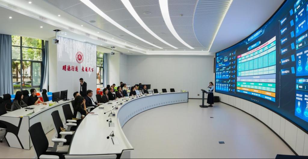 会前,重庆交通大学党委书记宫辉陪同朱莉总监一行参观学校智慧教育中心。通过现场演示、案例解读等方式,大家深入了解了我校在智能教学平台搭建、个性化学习方案研发、教育数据精准分析等方面的创新实践与丰硕成果,充分展现AI技术赋能教育融合的全新成果,为校园美育建设、复合型人才培育注入数字化新动能。