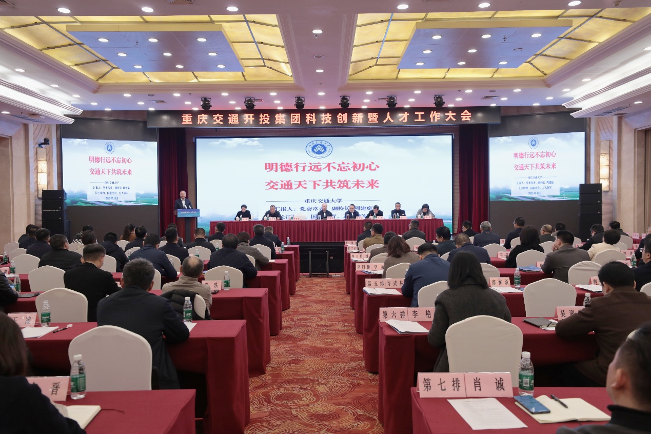 12月18日,重庆城市交通开发投资(集团)有限公司(以下简称“重庆交通开投集团”)召开科技创新暨人才工作大会。学校党委常委、副校长周建庭率科技处、产学研合作处、土木工程学院、交通运输学院、机电与车辆工程学院、信息科学与工程学院、山区桥隧国重实验室等相关职能部门、科研单位及学院负责人参加会议并与重庆交通开投集团签署产学研合作战略协议。会议由重庆交通开投集团党委副书记、总经理吴家宏主持。