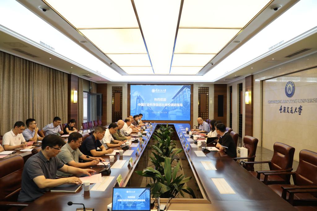 路育松副总编辑对学校的热情接待表示感谢,并对重庆交通大学在人文社科领域形成的特色研究方向和高水平成果表示高度赞赏。她指出,通过此次调研,更全面了解到学校不仅工程技术优势突出,社科研究也紧紧围绕国家战略需求和行业特色,形成了具有显著辨识度的学术品牌。她表示,中国社会科学杂志社愿与交大进一步加强联系,在各领域开展实质性合作,助力学校社科研究能力提升和成果转化,共同为推动中国特色哲学社会科学体系构建作出贡献。