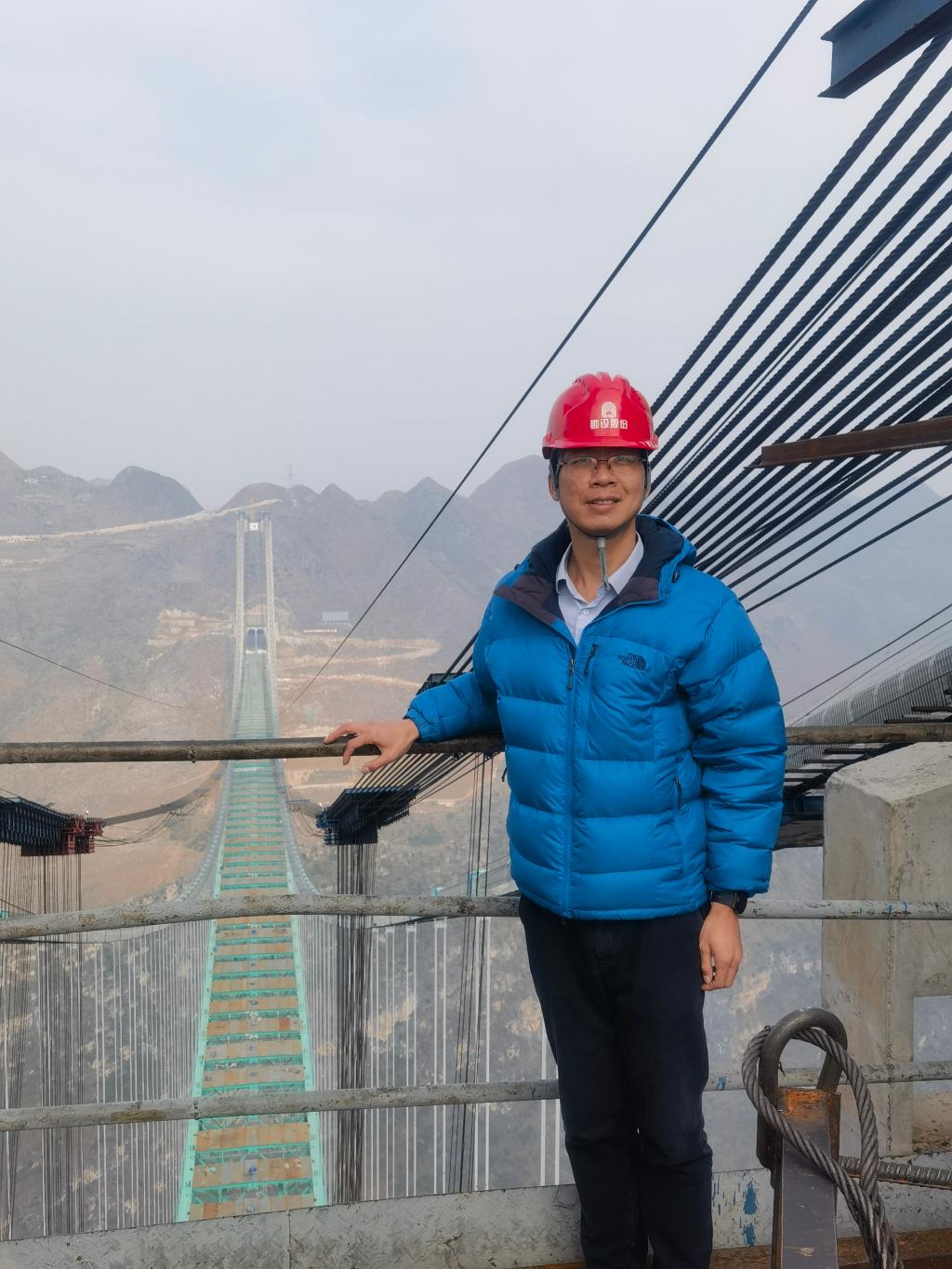 贵州桥梁集团第三分公司六安8标总工程师刘豪(2001级桥梁工程专业校友),作为总建造师,扎根一线20年,从基层技术员成长为“世界第一高桥”技术核心,亲手将宏伟蓝图变为横亘“地球裂缝”的钢铁奇迹。