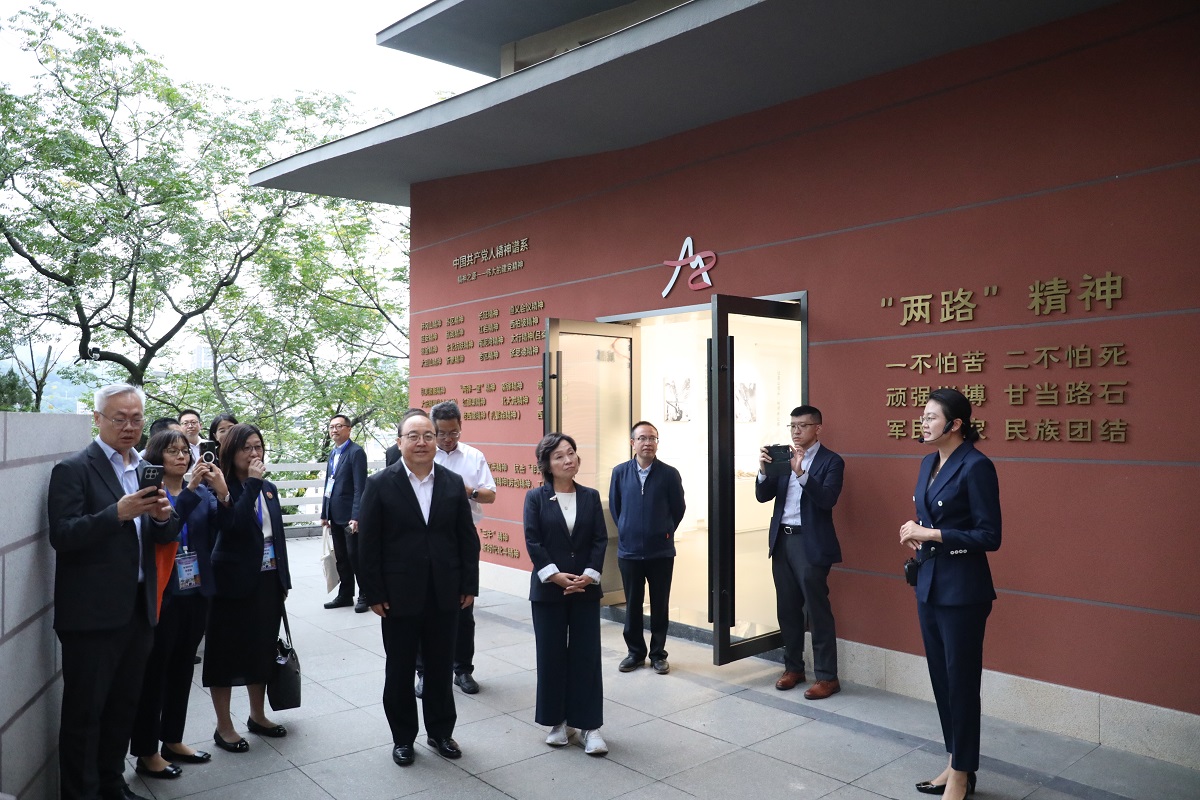 沿着重庆交通大学“两路”精神育人园的展陈脉络,蔡若莲局长一行切身感受了“两路”(川藏公路、青藏公路)建设历程的艰苦卓绝。通过珍贵的历史图片、实物展品与场景化讲解,代表团成员深刻体会到“两路”精神中无私奉献的家国情怀,对重庆交通大学以精神育人、助力国家交通事业发展的办学理念有了更为直观和深刻的认识。宫辉向香港代表团介绍,“两路”精神育人园不仅是交大人“逢山开路、遇水架桥”奋斗历程的历史积淀,更是交大人“感悟初心、奋发未来”的时代延续。蔡若莲局长表示,“两路”精神是兼具历史价值与时代意义的精神财富,可为两地青年交流搭建坚实的精神纽带。